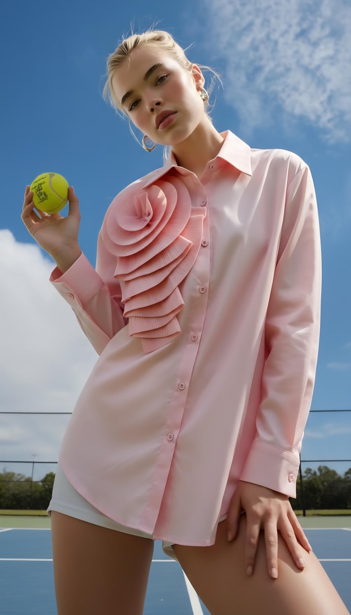 Camisa rosa de manga larga con detalle de flor flisada en lateral. Talla S.- 55cm de sisa a sisa Talla M.- 57cm de sisa a sisa Talla L.- 59cm de sisa a sisa
