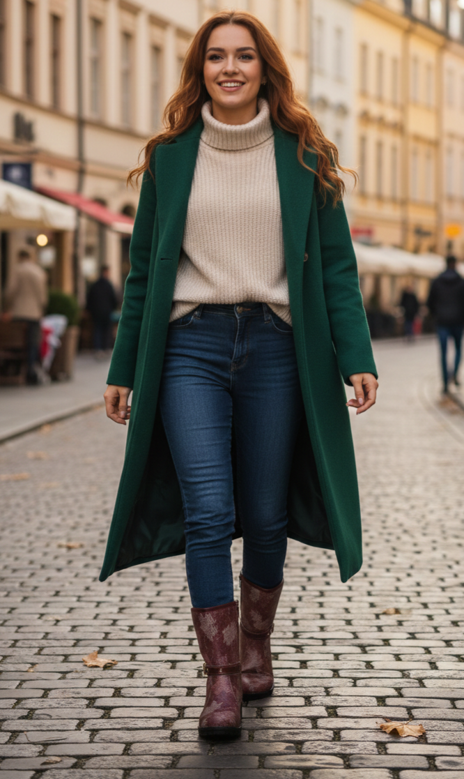 Bota plana de piel con caña media. Estampación burdeos, blanco y rosa. Suela dentada de goma. Cremallera lateral. Punta redondeada. Correal al tono decorativa.