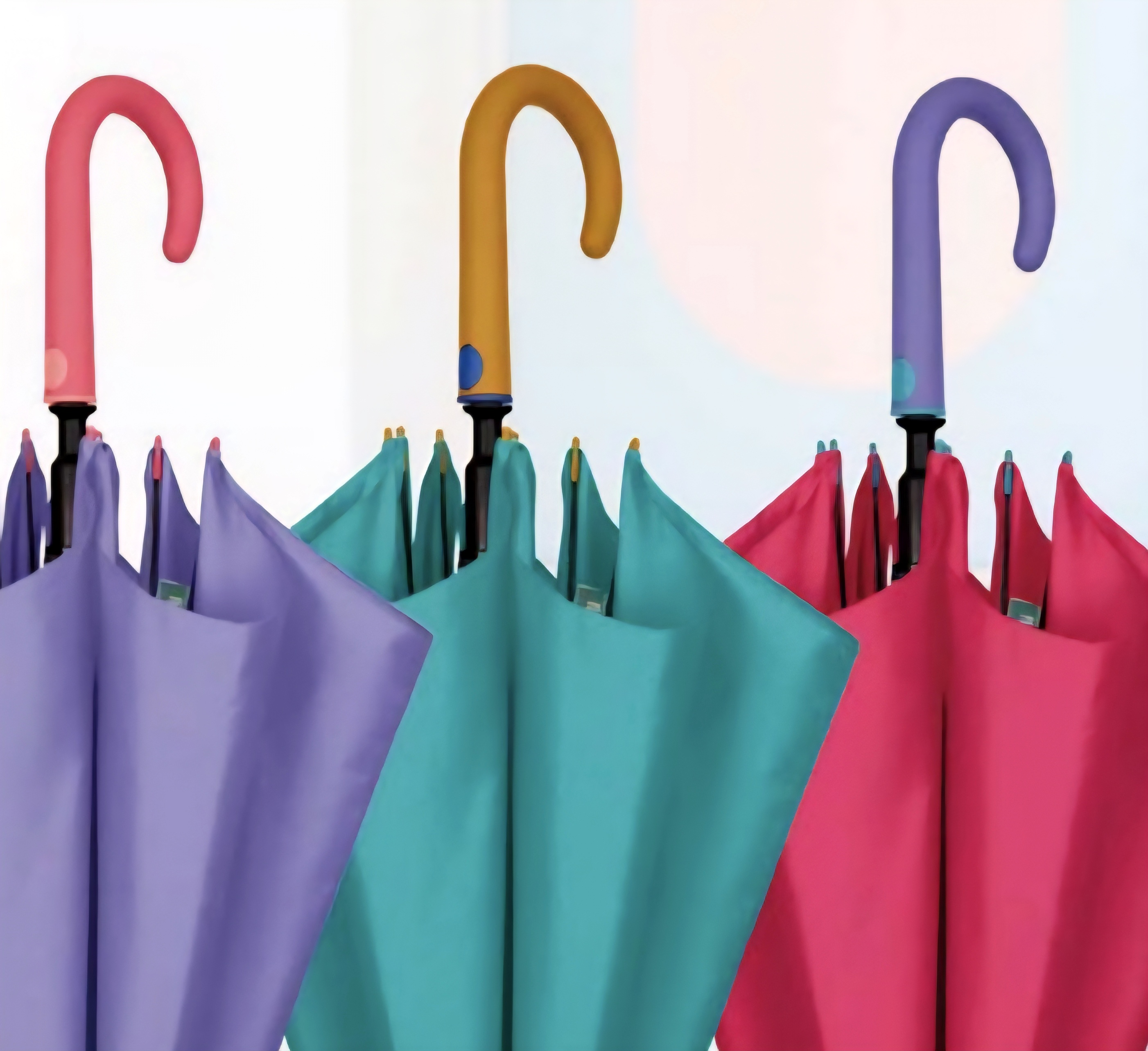 Paraguas largo de bastón con cierre automático. Multicolor en colores lisos. Diámetro abierto.- 102cm